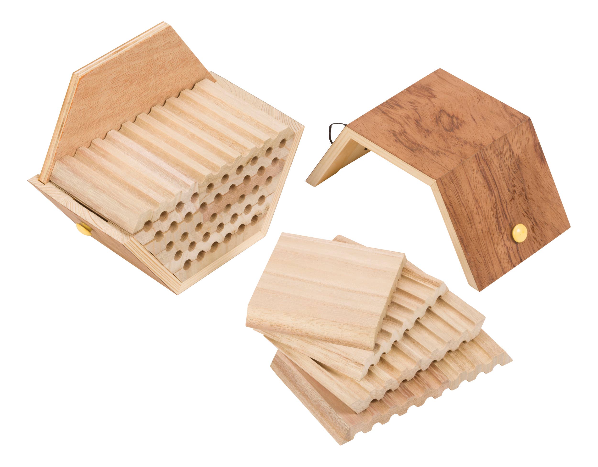 The popular Beetle & Bee Garden Solitary Bee Habitat kit includes a wooden bee habitat with holes and instructions. Measures 7.5 x 4.5 x 6.5 inches. A high-quality hexagon-shaped structure, this bee habitat attracts non-swarming bee species like the mason bee to nest and raise their young. Each bee habitat is made of eco-friendly FSC-certified wood that ensures environmental and economic sustainability. The habitat comes apart for easy cleaning, but parental supervision is recommended before doing so.
