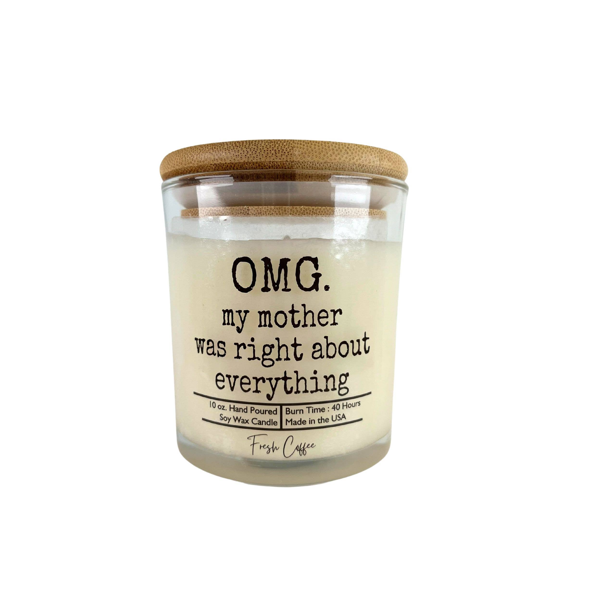 OMG my mother was right about everything - Mothers Day Candle - Simply Select the scent you would like for the case. These are a 10oz. glass vessel with a bamboo lid.