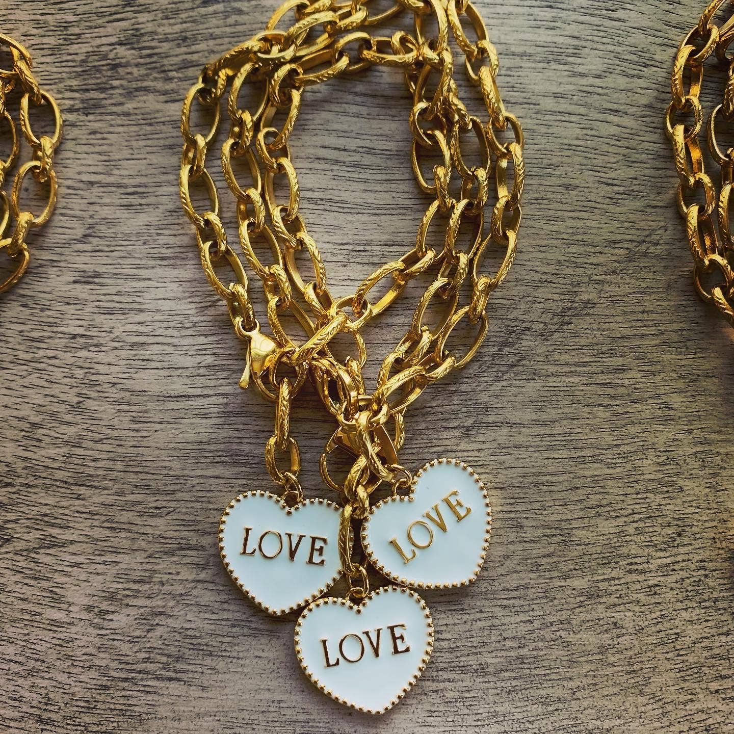 The etched gold plated stainless oval link chain has a nice weight, bracelet is 7.5” but can be fastened anywhere on this style chain.
