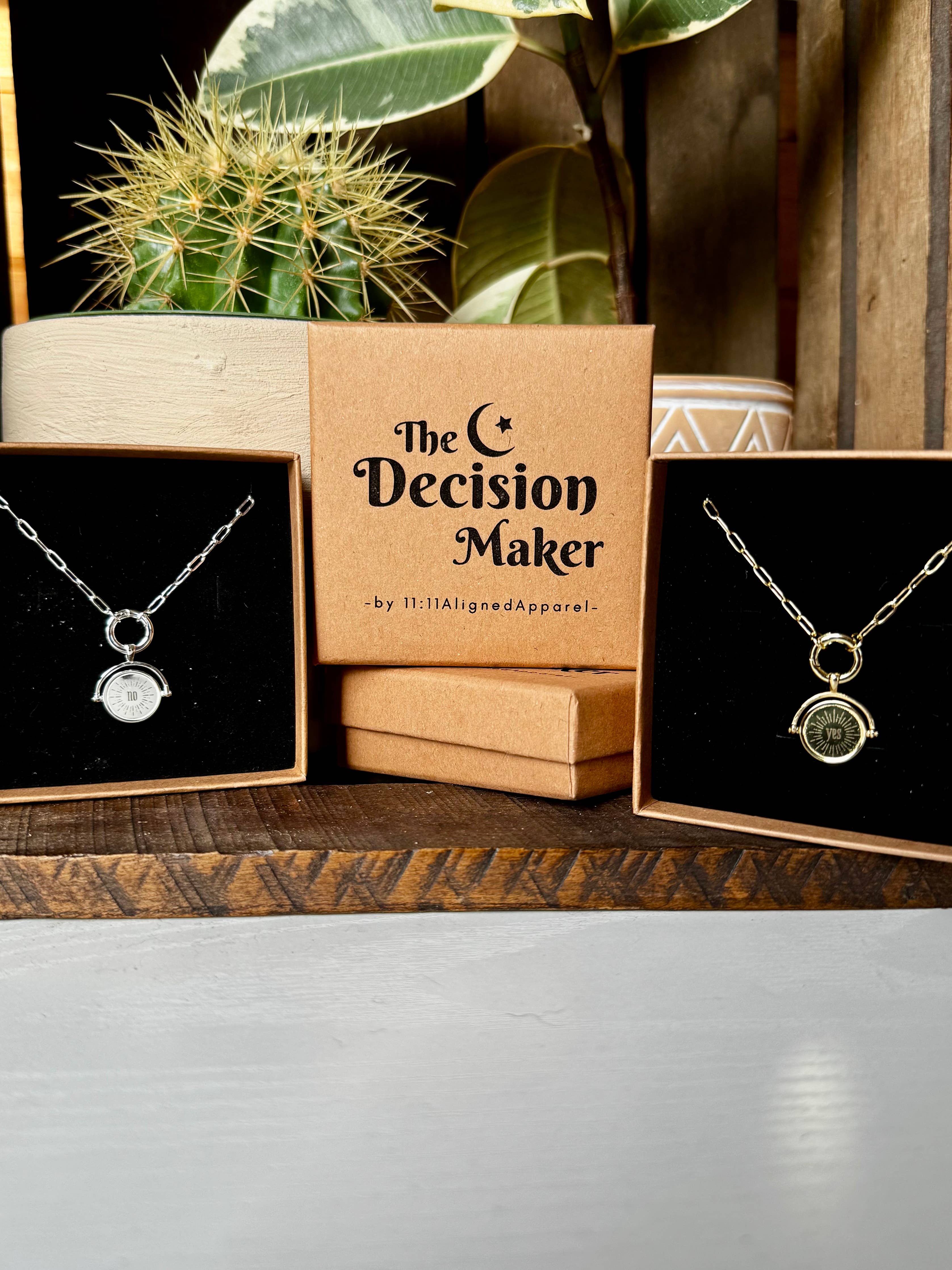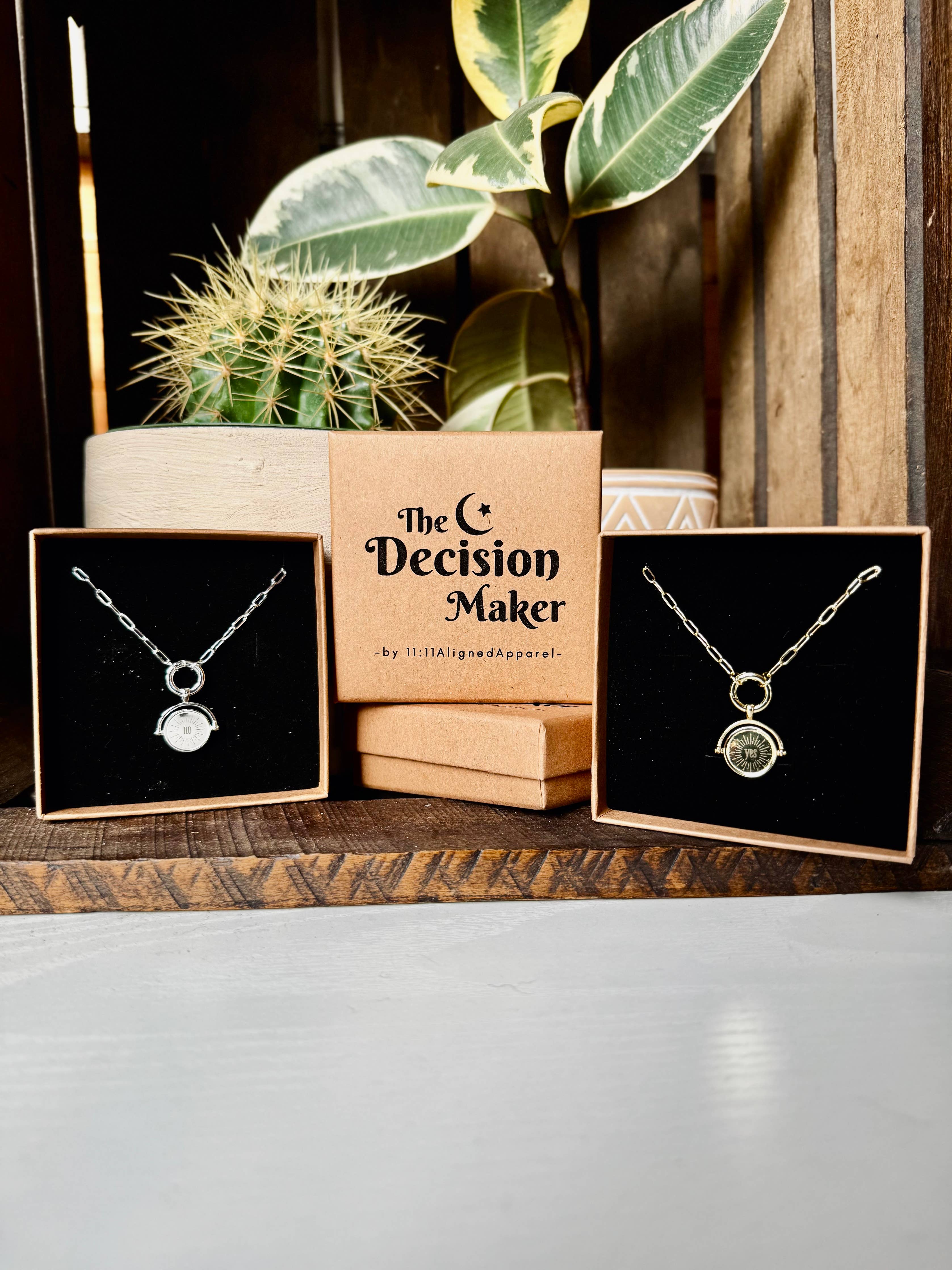 Let fate take the wheel with The Decision Maker Necklace. This unique piece features a spinner function with a “Yes” on one side and “No” on the other. Perfect for moments when you need a little guidance—or just want to have a bit of fun—the Decision Maker is your stylish and unique solution.