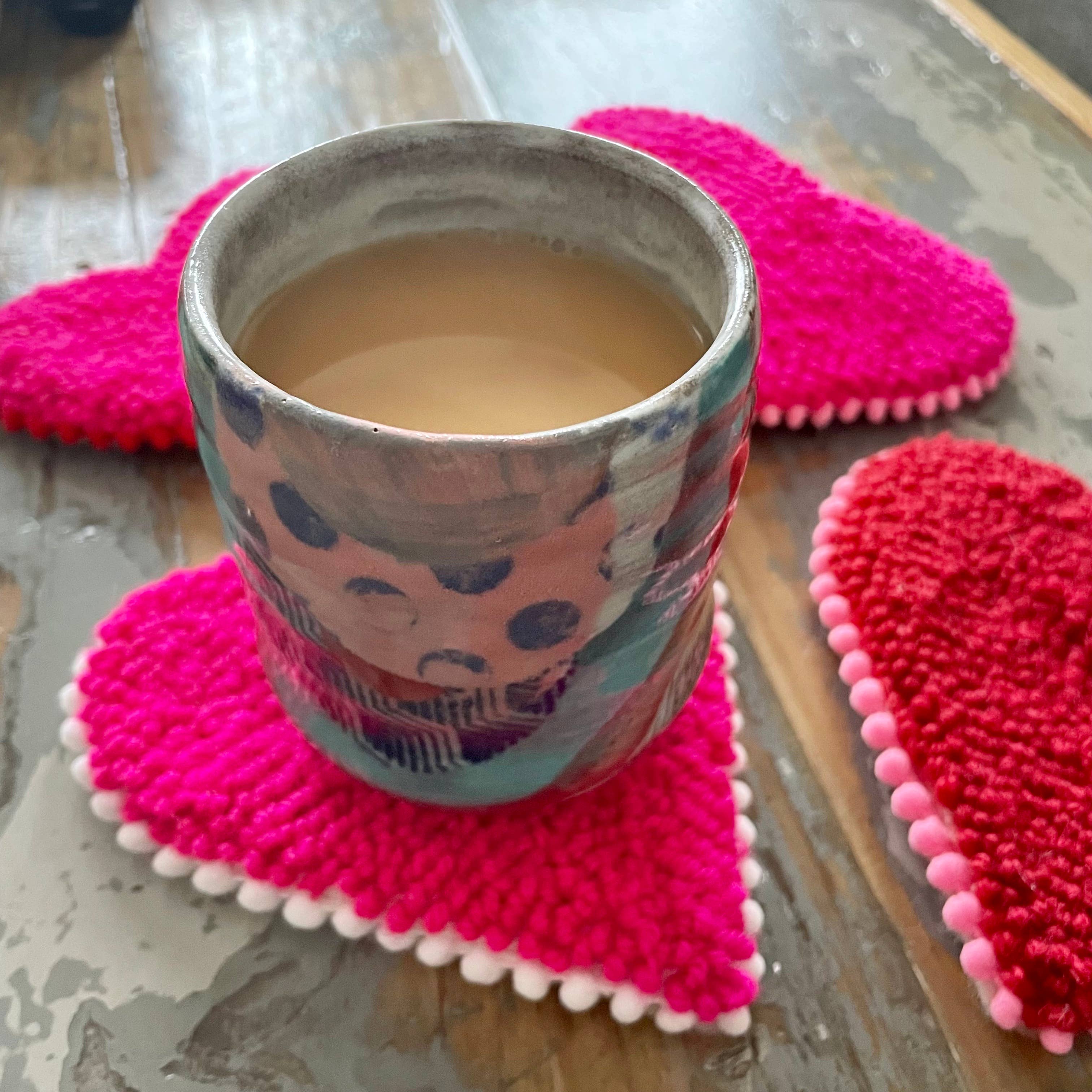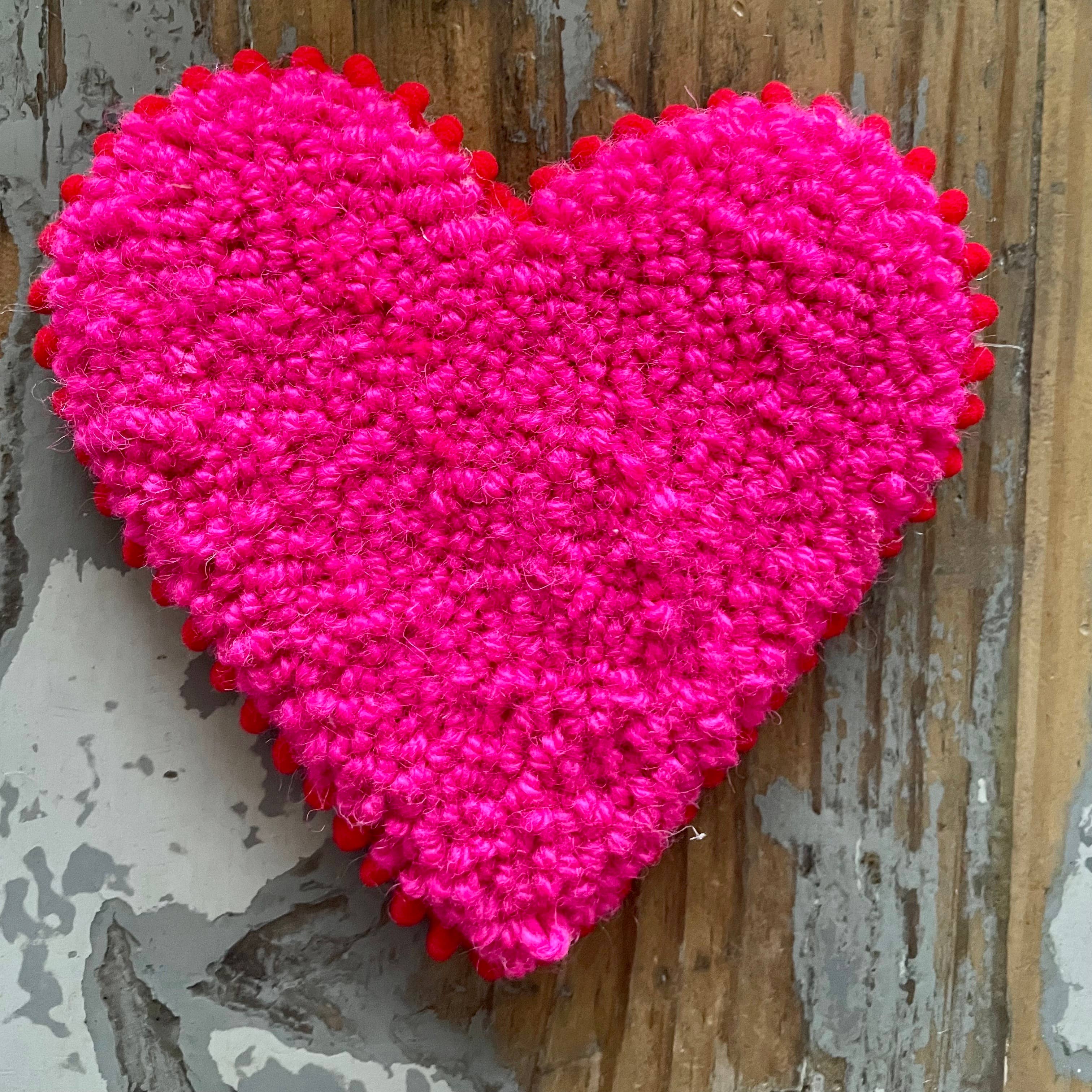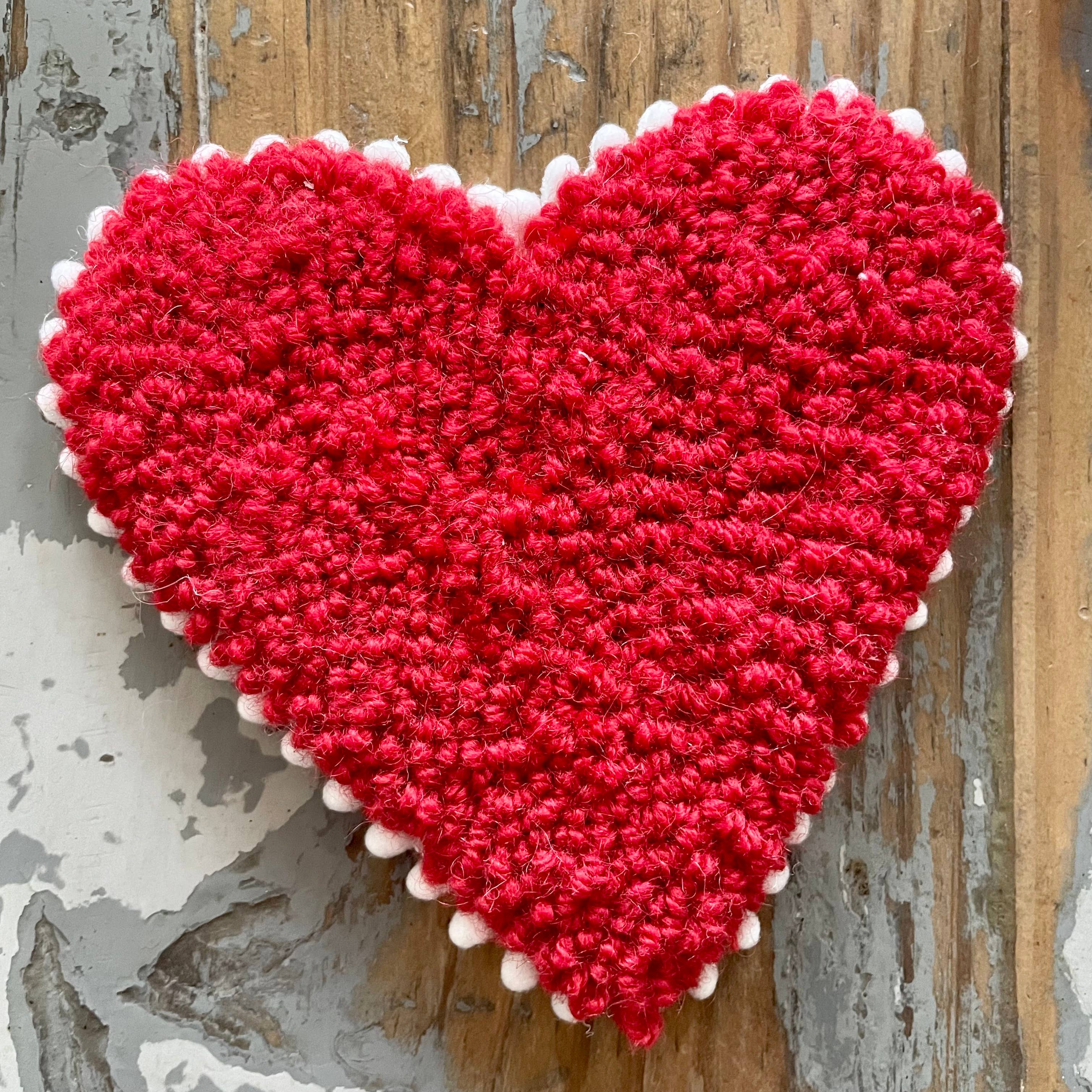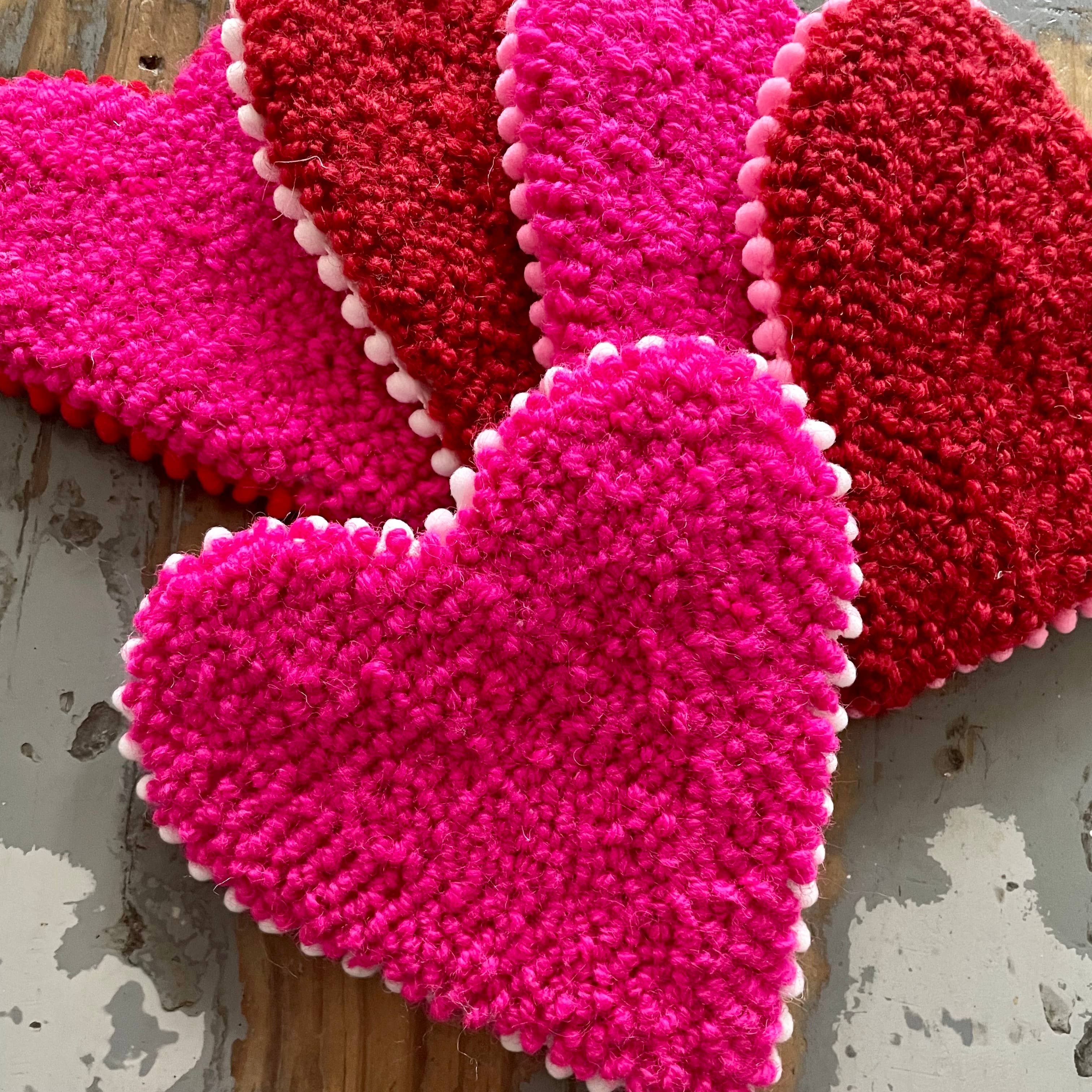 Each heart is handmade by me using punch needle technique. These are not done by machine.
