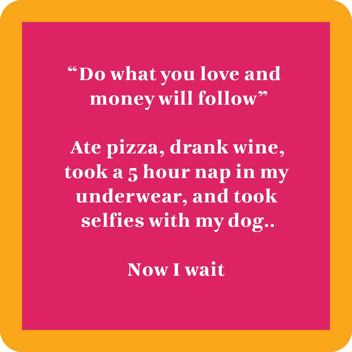 “Now I Wait" Coasters are 4”x 4” resin with cork backing and round corners. Made in the USA.