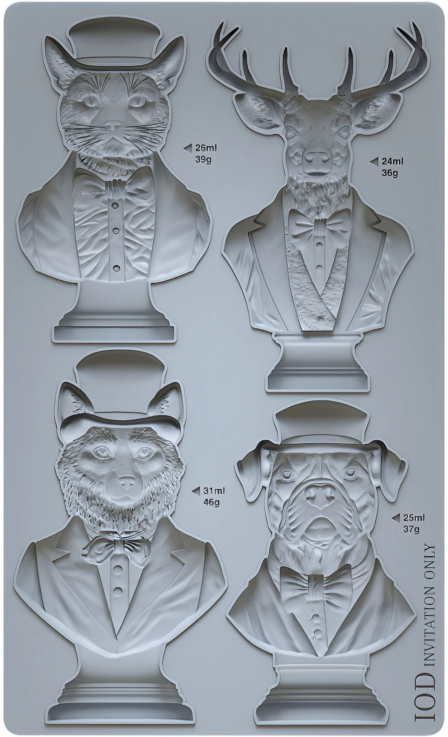 Presenting Invitation Only Mould, a collection of personified animals that embody eccentricity and fun. Blending seamlessly with apothecary and academia themes, this set adds a touch of quirk and playfulness (because not everything in your decor needs to be serious!😉). Perfect for crafting a charming mini gallery or symmetrical Christmas ornaments, Invitation Only brings whimsy and delight. It pairs perfectly with our Conservatory Labels Mould and alphabet stamps, making it a versatile choice for IOD wood blank projects.