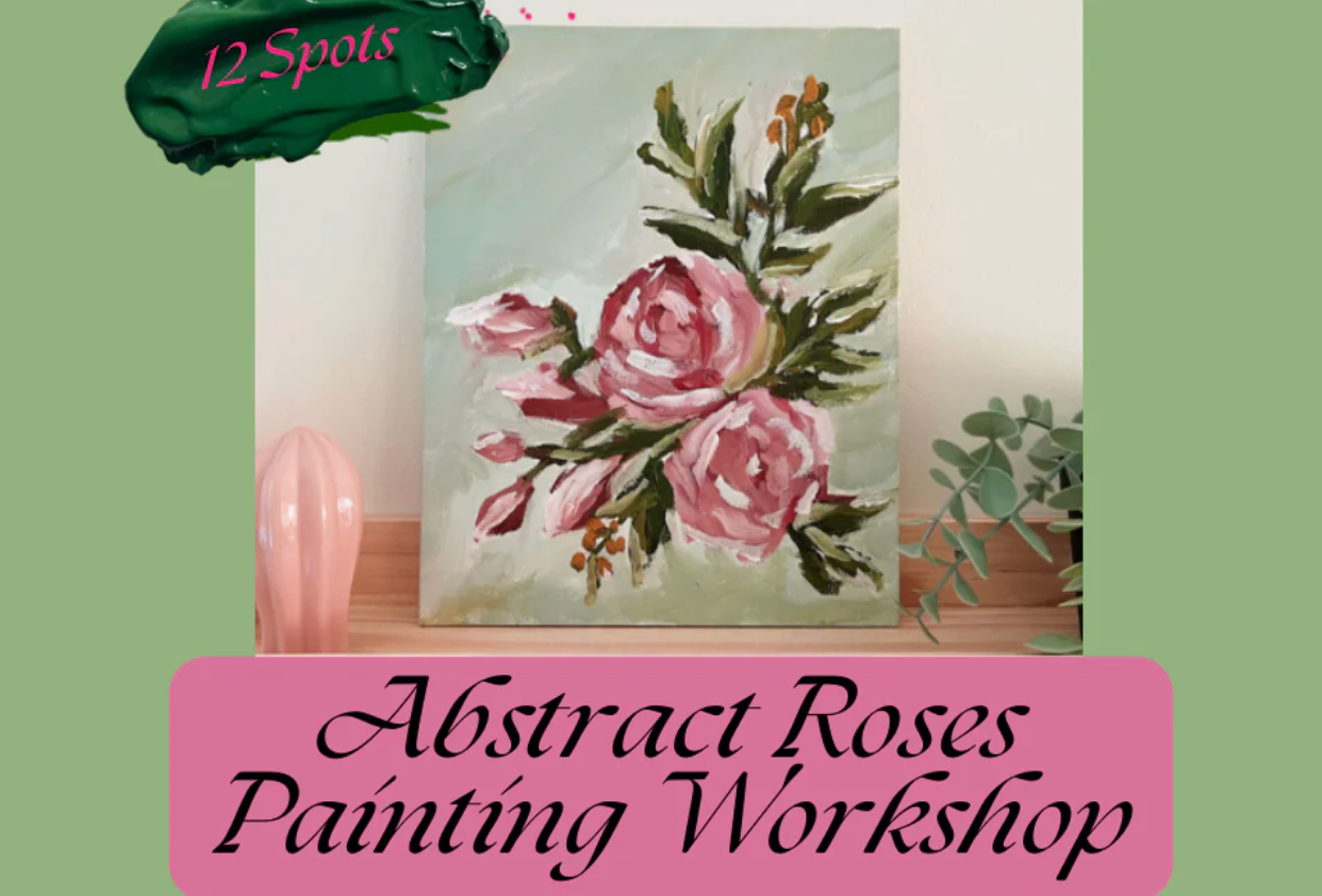 Join Marietta Makery owner & Artist, Marietta Gretta (Greta Guimond) to create a beautiful ABSTRACT Rose Painting using two teaching techniques... brushes and a palette knife.