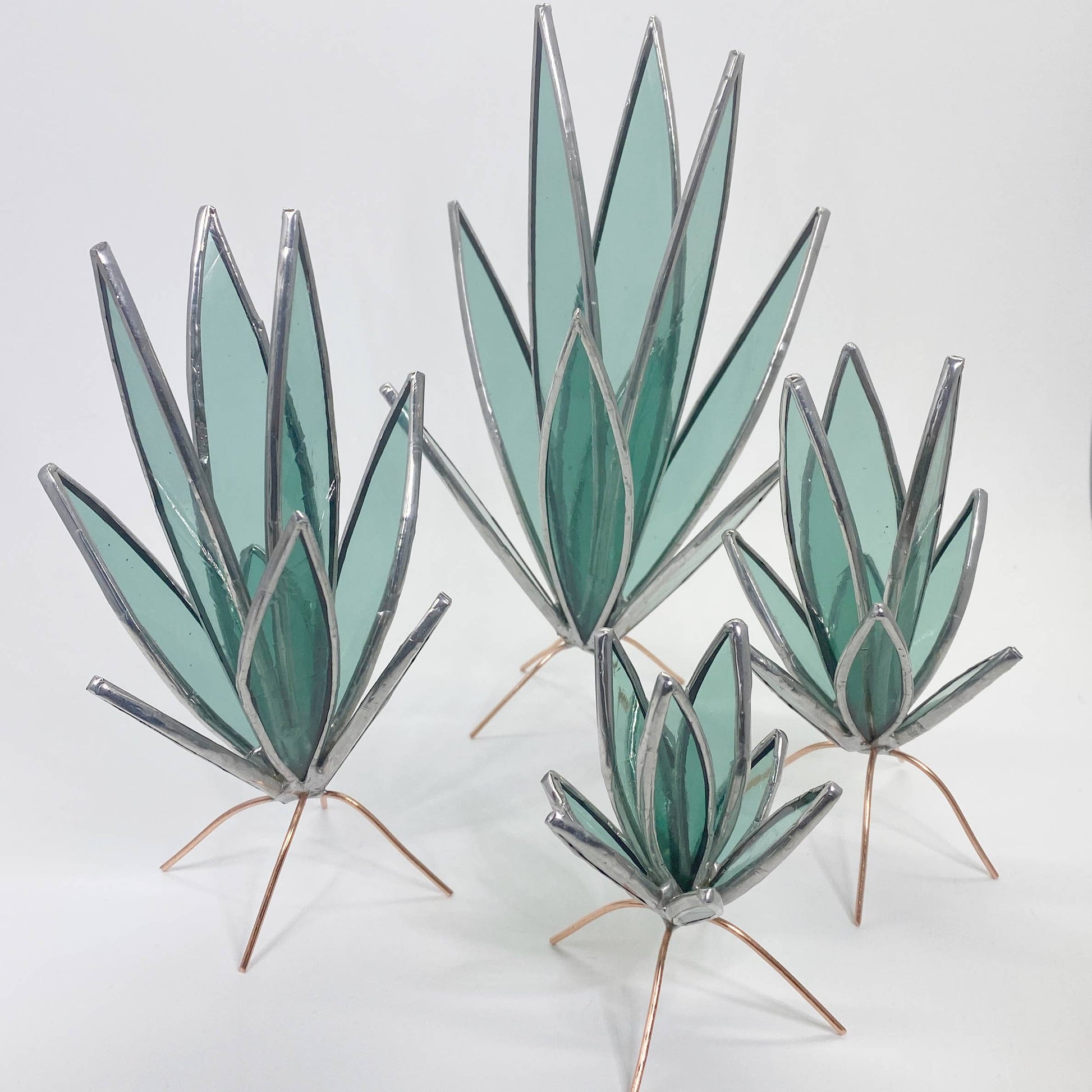 Stained Glass Snake Plants made for those with and without the coveted green thumb. Mini Snake Plants measure approximately 3” tall... Lead-based solder. Please handle carefully. Keep out of reach of children.