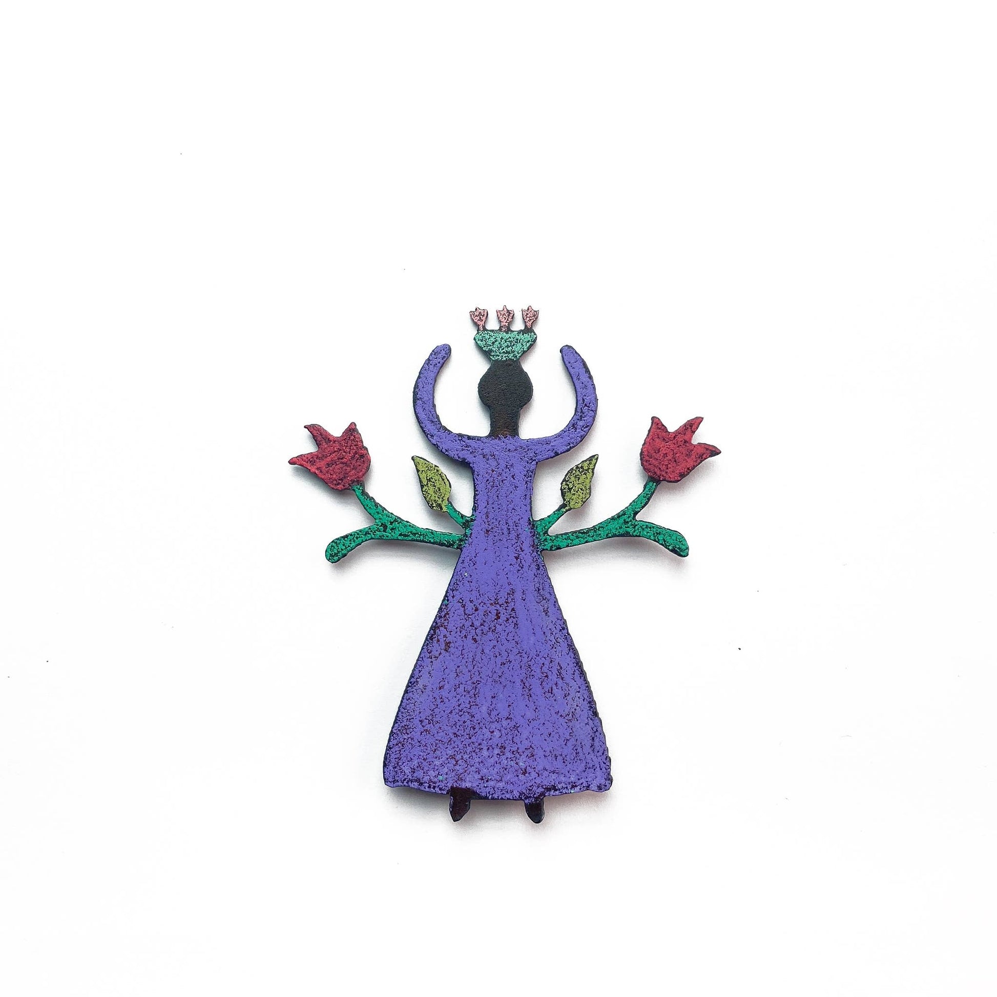 Angel Flowers magnet painted in assorted colors and made in the USA. Small batch maker. We use recycled metals. Strong magnet These are really cute.