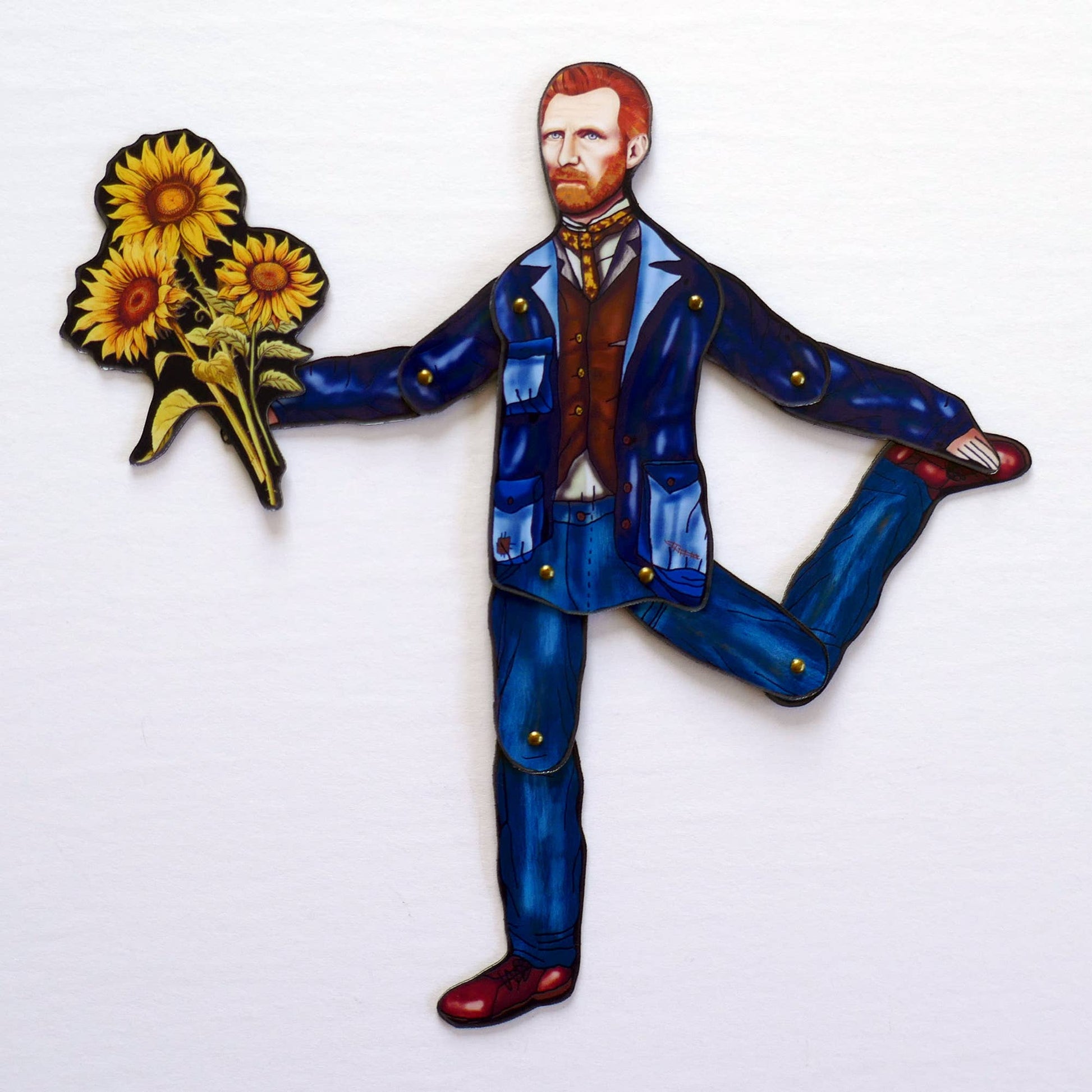 Salvador Dali, Pablo Picasso, Vincent Van Gogh, and Frida Kahlo is a mix for all tastes inspired by famous artists. Each doll is app. 8x2in in size. The set can be customized according to our entire range of products, so please inform me which items you would like to incorporate into your selection. The Paper Idoll series will definitely become an excellent addition to your highly curated product range. The Paper IDolls with bright packaging will certainly attract visitor attention and become an unforgettable souvenir for art and music fans and a great gift for the upcoming holidays. "The Paper Idoll" is an interactive magnet designed for those who seem to have everything. It features an 8-inch magnetized doll with movable joints that can be posed in funky ways—make it fly, jump, sit, or dance. A must-have for any art and music lover with a fridge!.