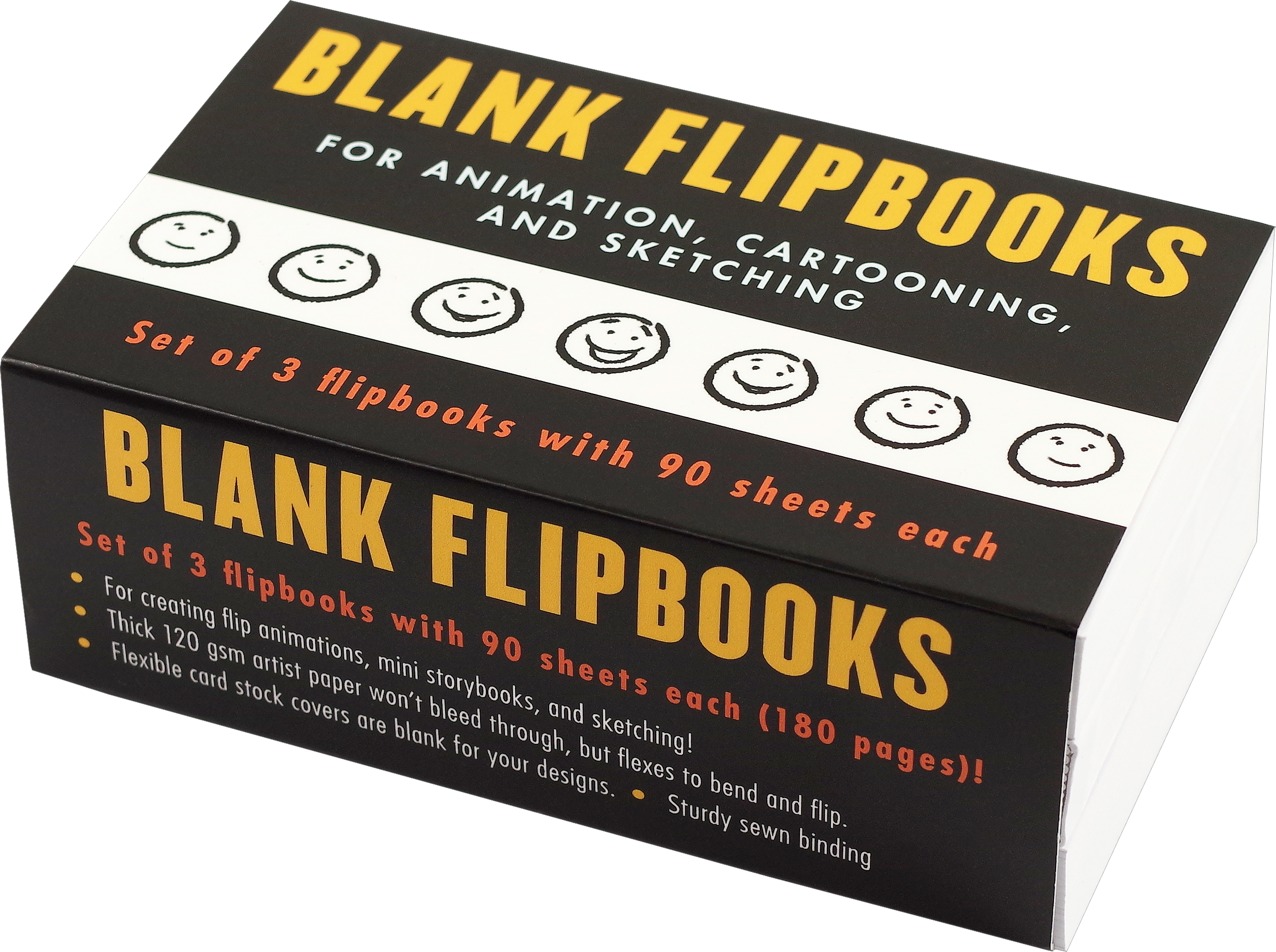 Become an animator with this 3-pack set of Blank Flipbooks ! Ideal for creating flip animations, for cartooning, making mini storybooks, or for sketching. Thick 120 gsm artist-grade paper. Heavyweight paper won't bleed through. Each book flexes to bend and flip. Flexible card stocks covers are blank. Create your own cover design! Set of 3 flipbooks. 90 sheets (180 pages) each. Each flipbook measures 2-1/2'' x 4-14''. 3-pack set comes banded and shrink-wrapped.