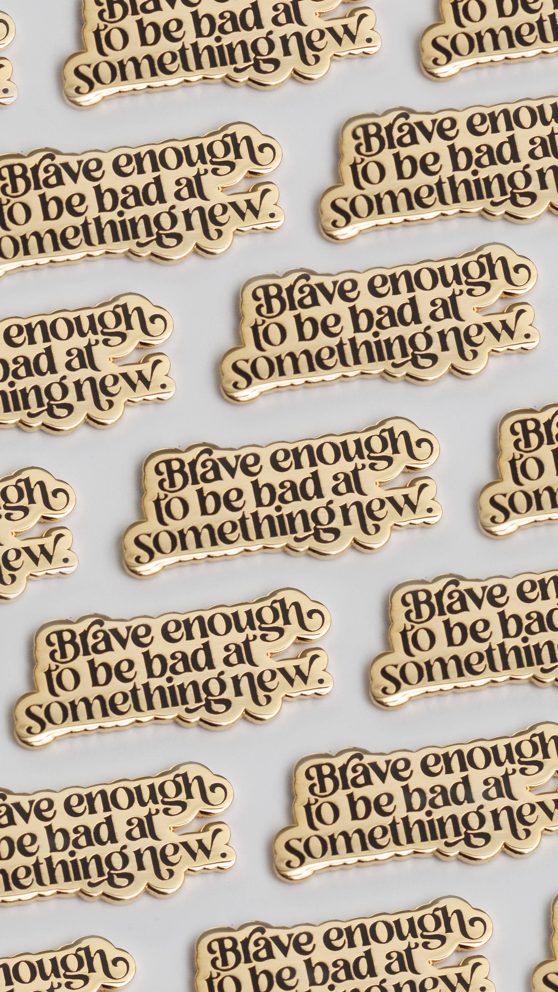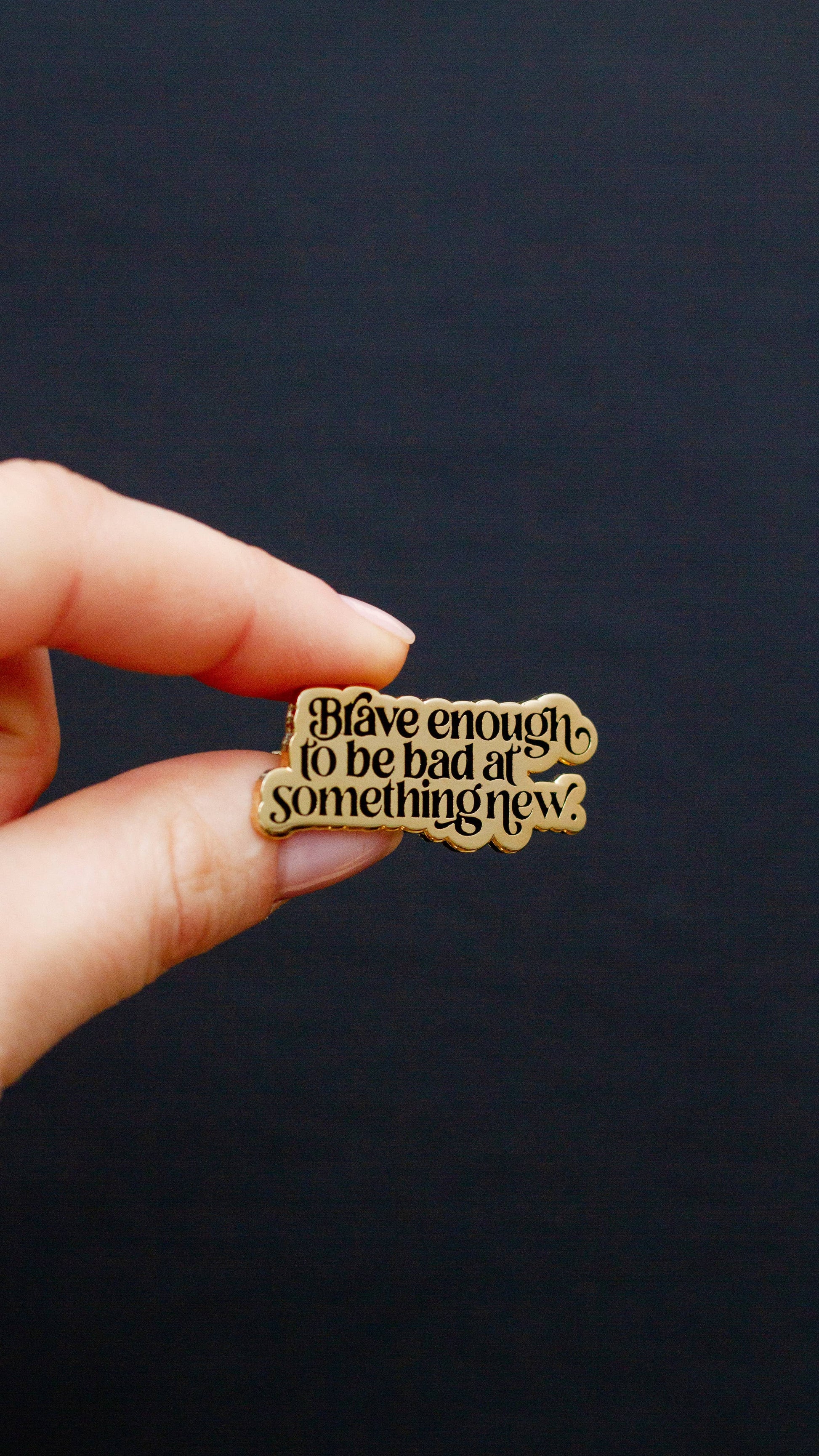 Trying new things is scary. And hard. This serves as a reminder that you are brave. This fun gold and black enamel pin makes a perfect gift for the amazing people in your life. This simple statement pin has been designed with gorgeous screen printing in black and white with the phrase “Brave enough to be bad at something new." It makes for a super stylish gift for loved ones.