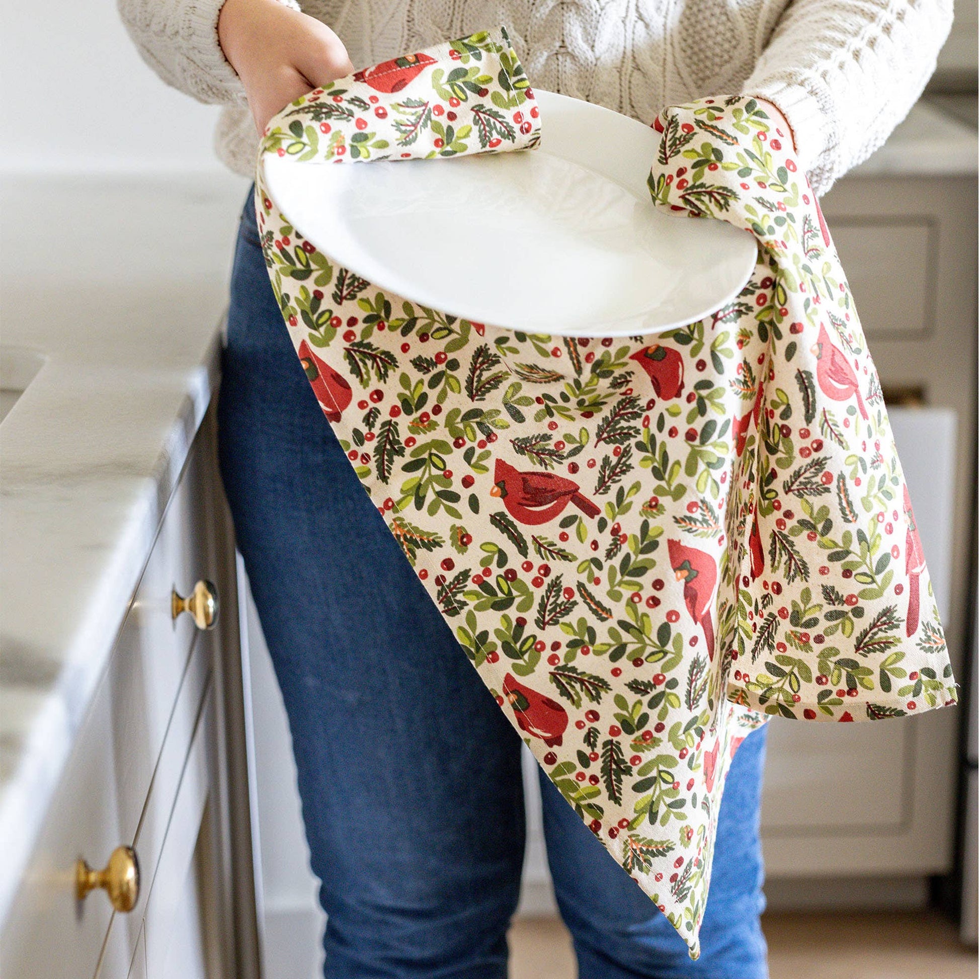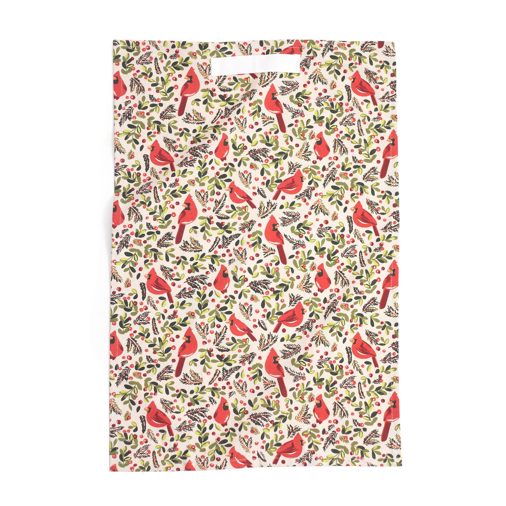 Bring a touch of nature-inspired charm to your kitchen with the Cardinal Kitchen Towel. Featuring a beautifully illustrated cardinal amidst wintery branches, this towel combines both style and practicality. Made from 100% cotton, it offers excellent absorbency for drying dishes, cleaning spills, and handling all your kitchen tasks effectively.