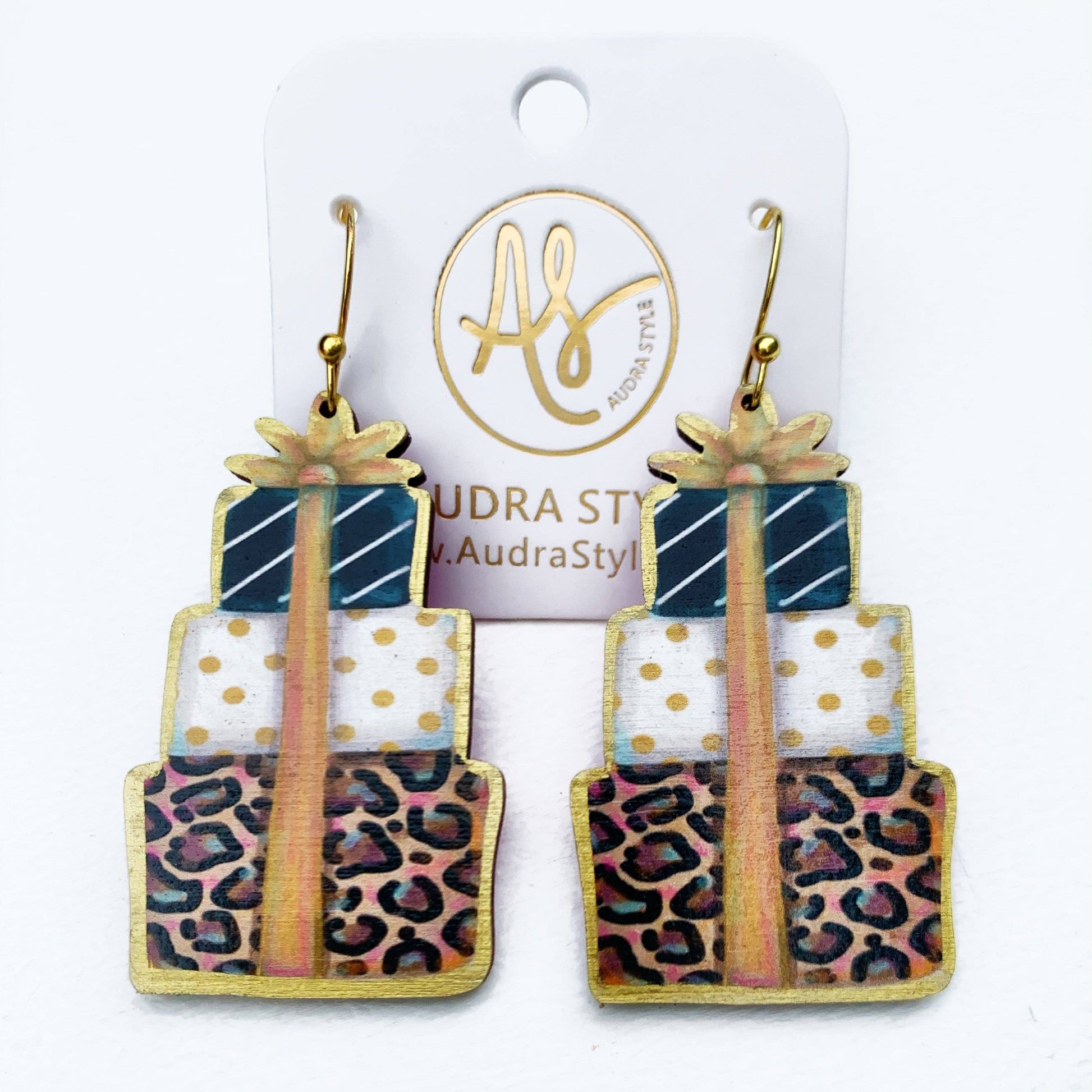 Christmas Earring - Black and Gold Stacked Gifts