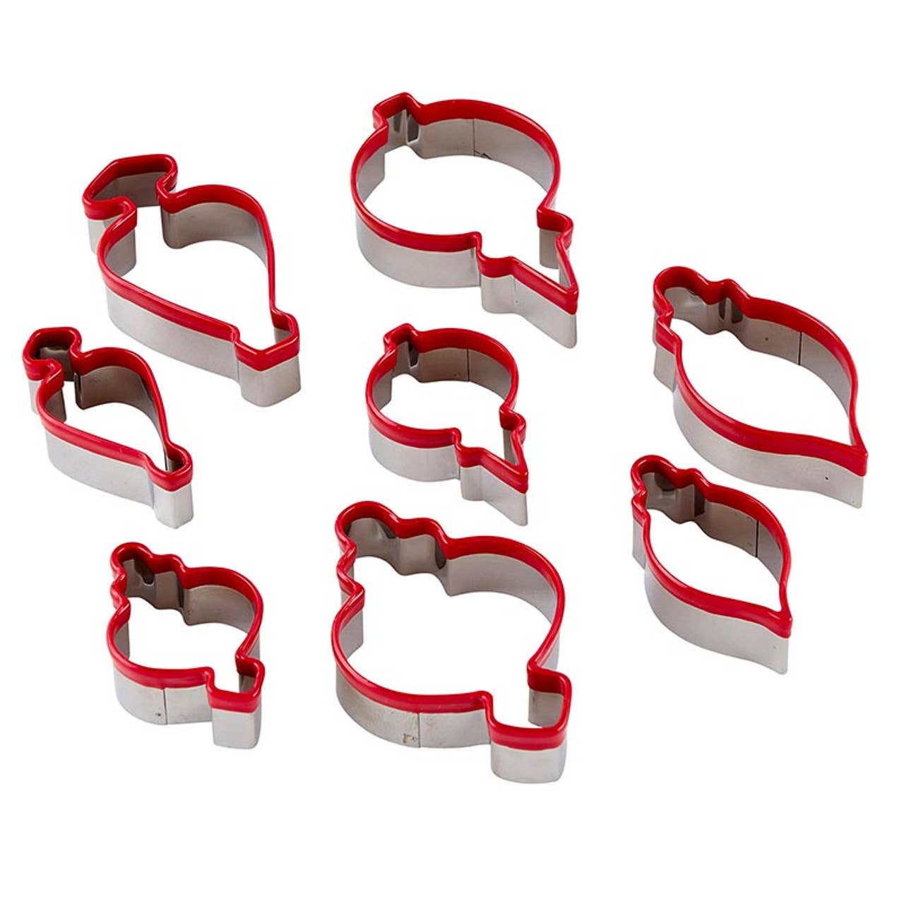 Because sometimes a glass of milk just doesn't do the job! This set of 8 cookie cutters feature traditional holiday ornaments for a festive cookie season!