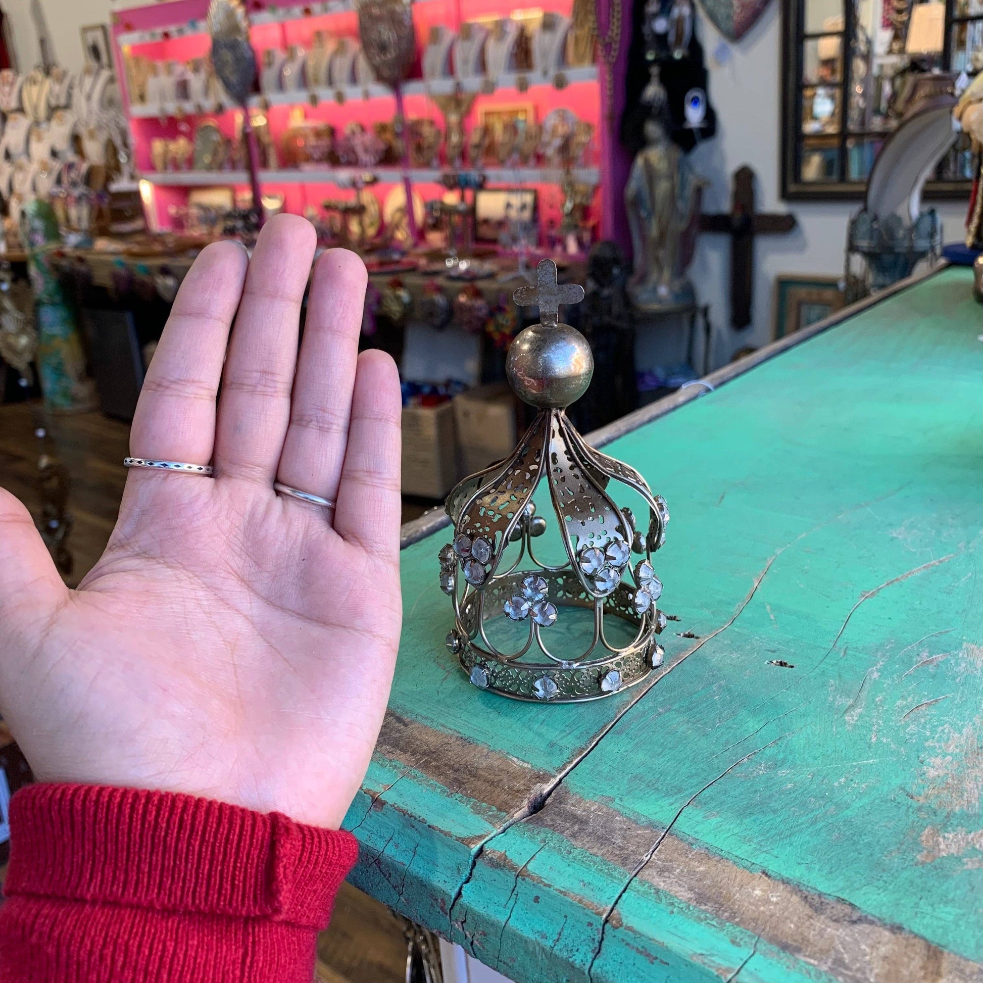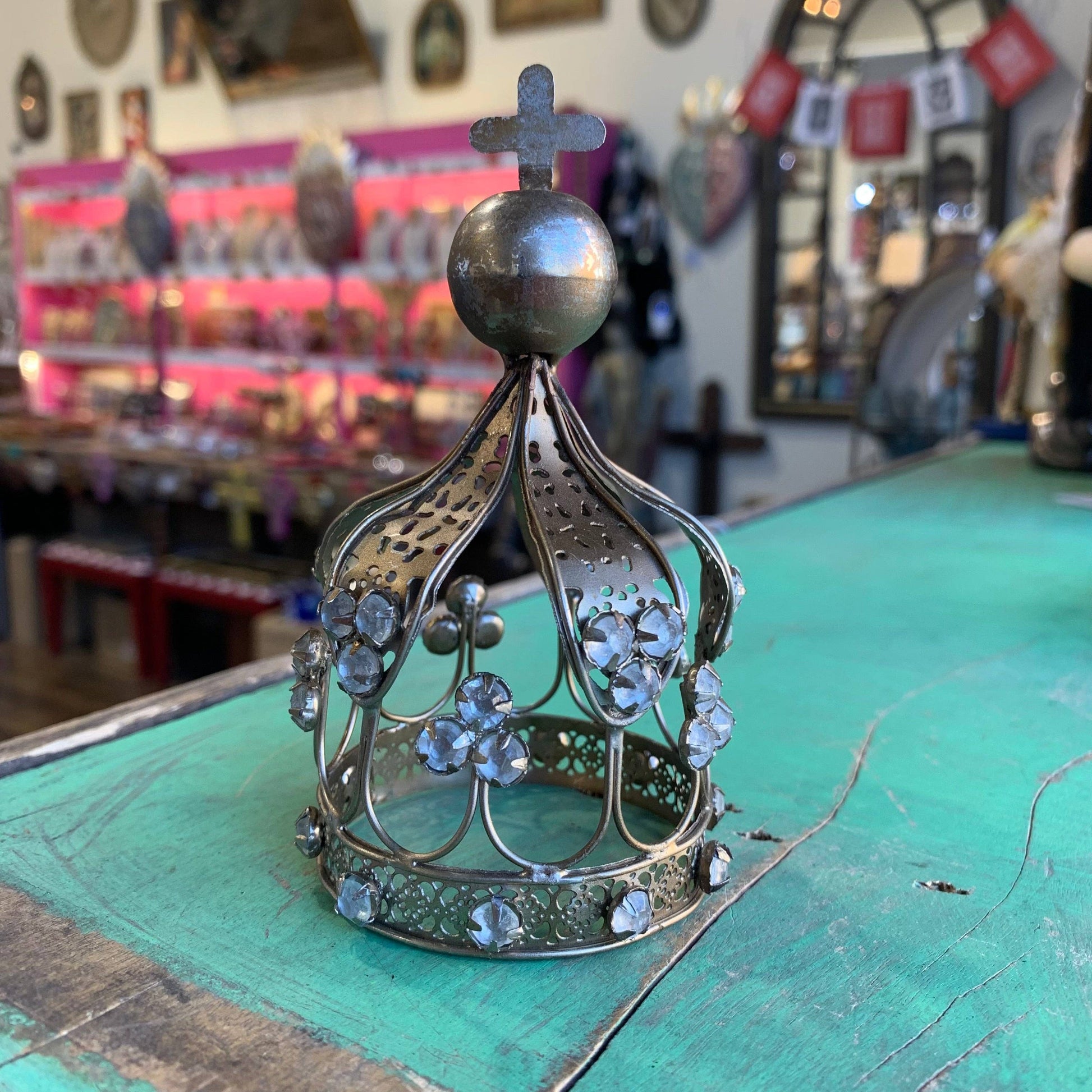 Medium is 6cm (2 1/2”) opening at bottom of crown. (Antique Silver crown with cross on top)