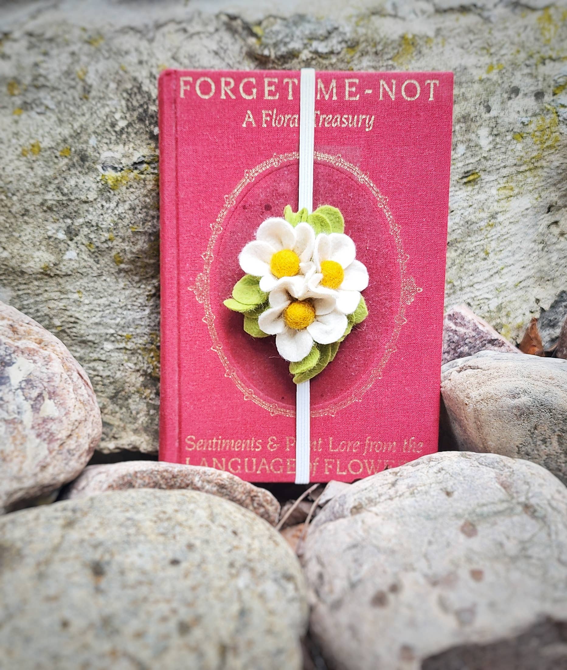These bookmarks make the perfect gift for any avid reader! Each bookmark is embellished with handmade wool felt flowers secured on an elastic band to fit almost any size book.