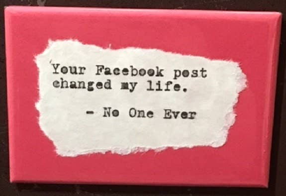 Inspirational Fridge Magnet: "Your Facebook..." Said No One Ever. Literary, Motivational Quotes. Hand Typed, Hand made 2"x3" Fridge Magnet