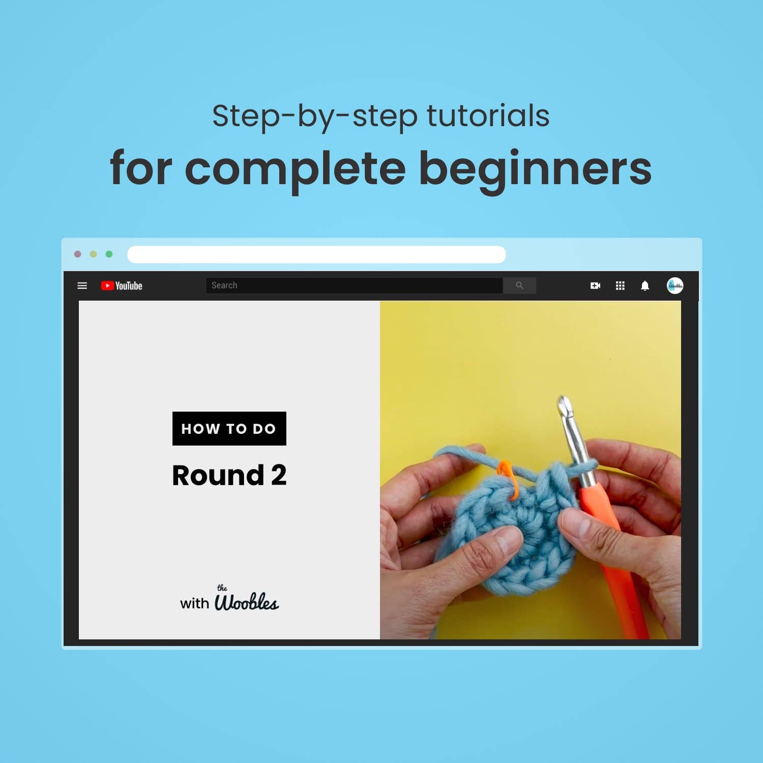 Introducing Kiki the Chick - The Woobles Chick Crochet Kit. The Woobles Chick Crochet Kit is perfect for beginners! The kit includes all the materials you need, plus step-by-step video tutorials that expertly guide you through each stitch and technique that matches the kit in your hands.