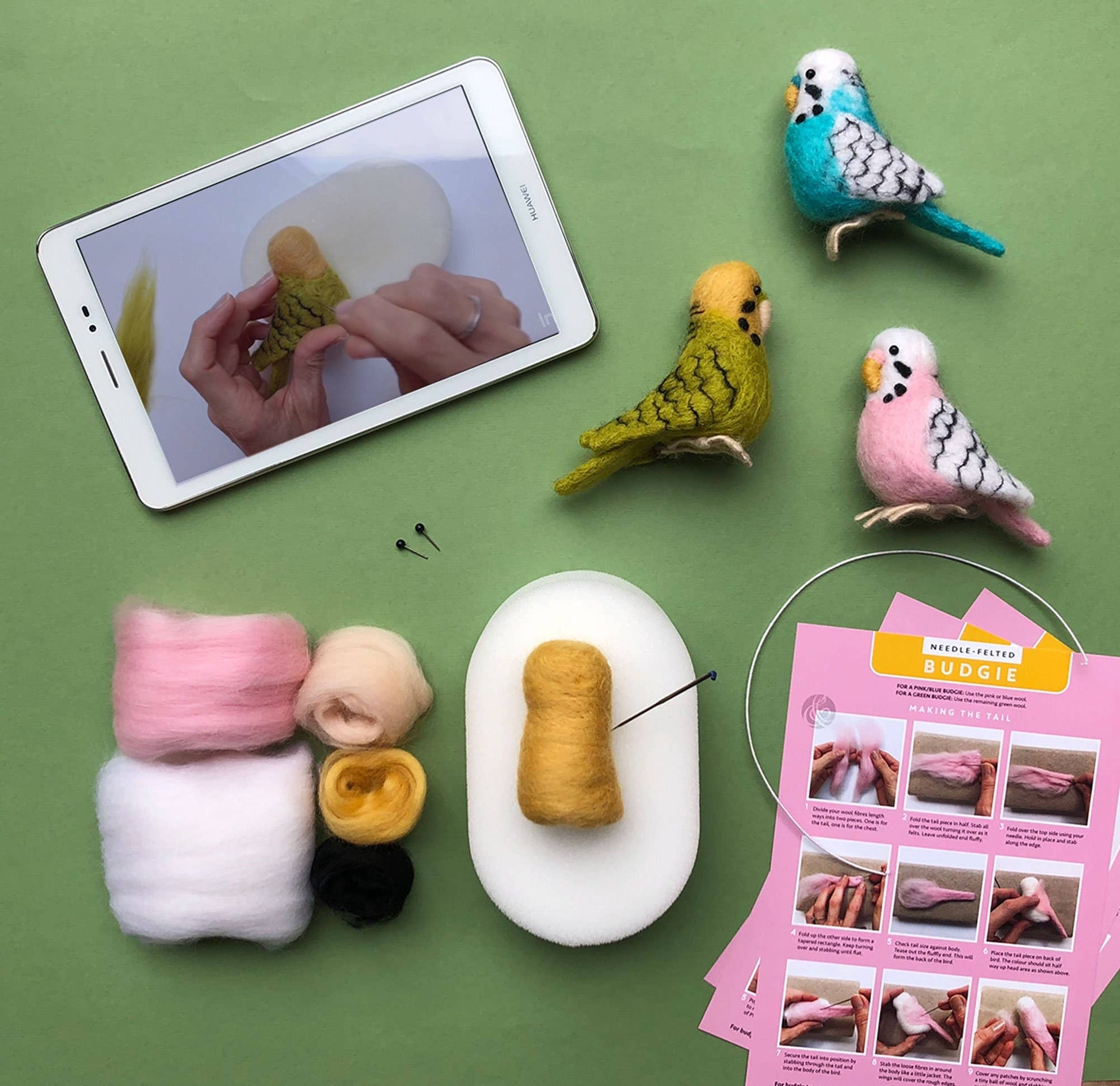 Needle Felting Kit Budgie. Make A Pink Budgerigar From Wool.