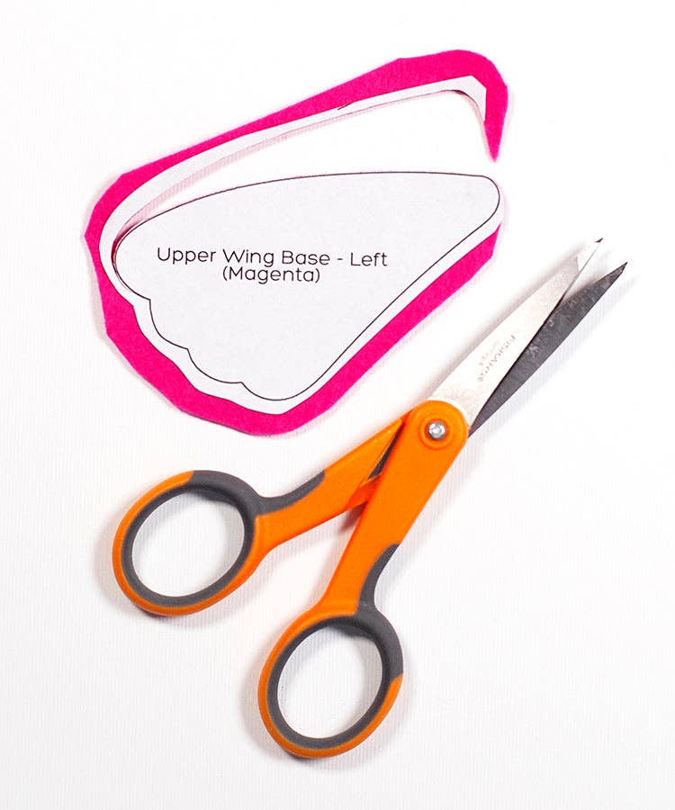 This DIY ornament kit includes all the materials you need to make a pink moth ornament (except for glue, scissors and scalloped shears). The pattern is preprinted onto transfer material, so all you have to do is stick it on the felt and cut out the pieces. Then you are ready to assemble these beautiful ornaments. Designed by Lolli + Grace.