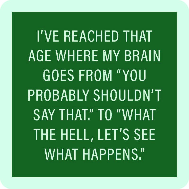 “I’ve reached that age where my brain goes from “You probably shouldn’t say that,” to “What the hell, let’s see what happens.”