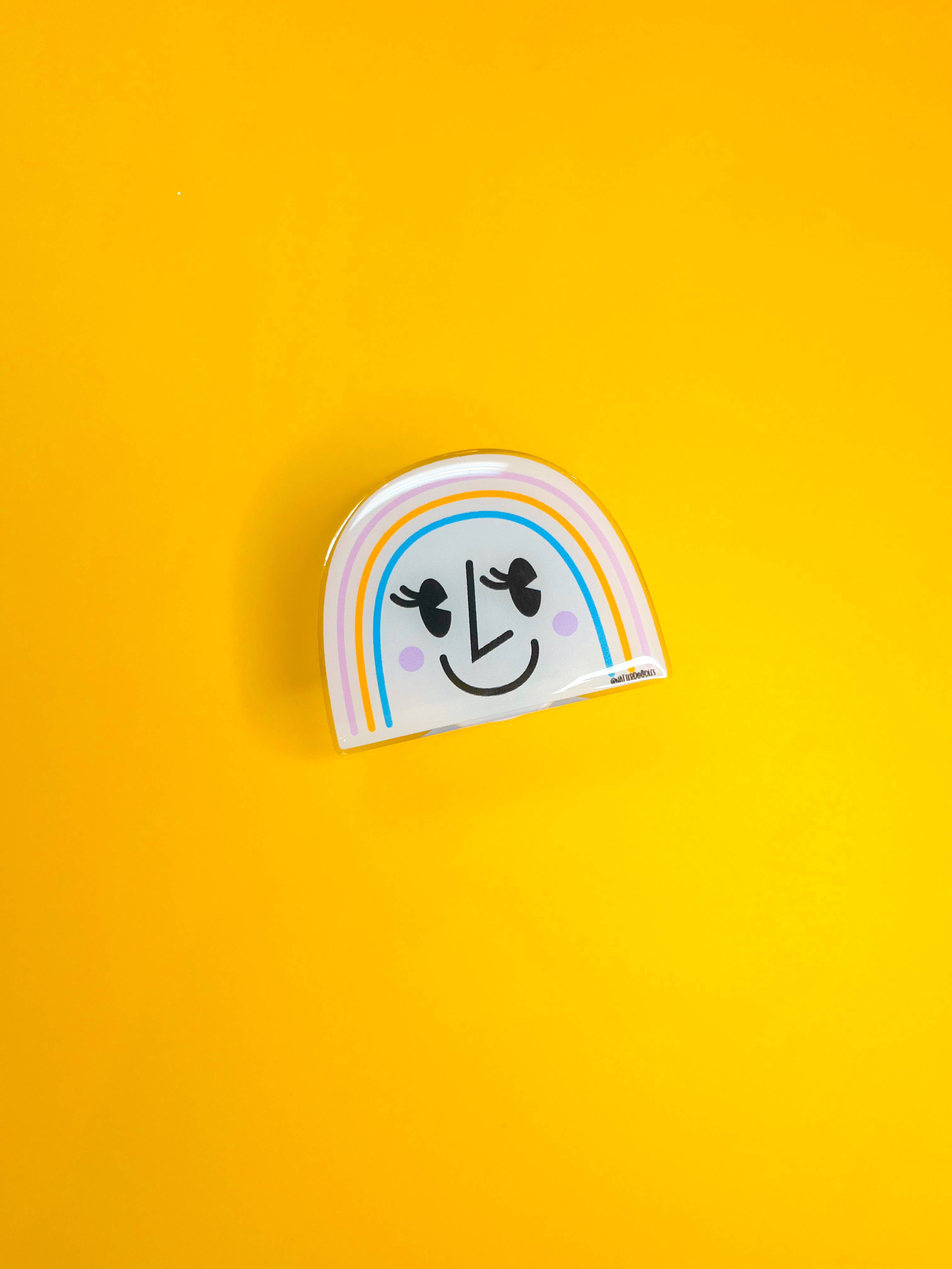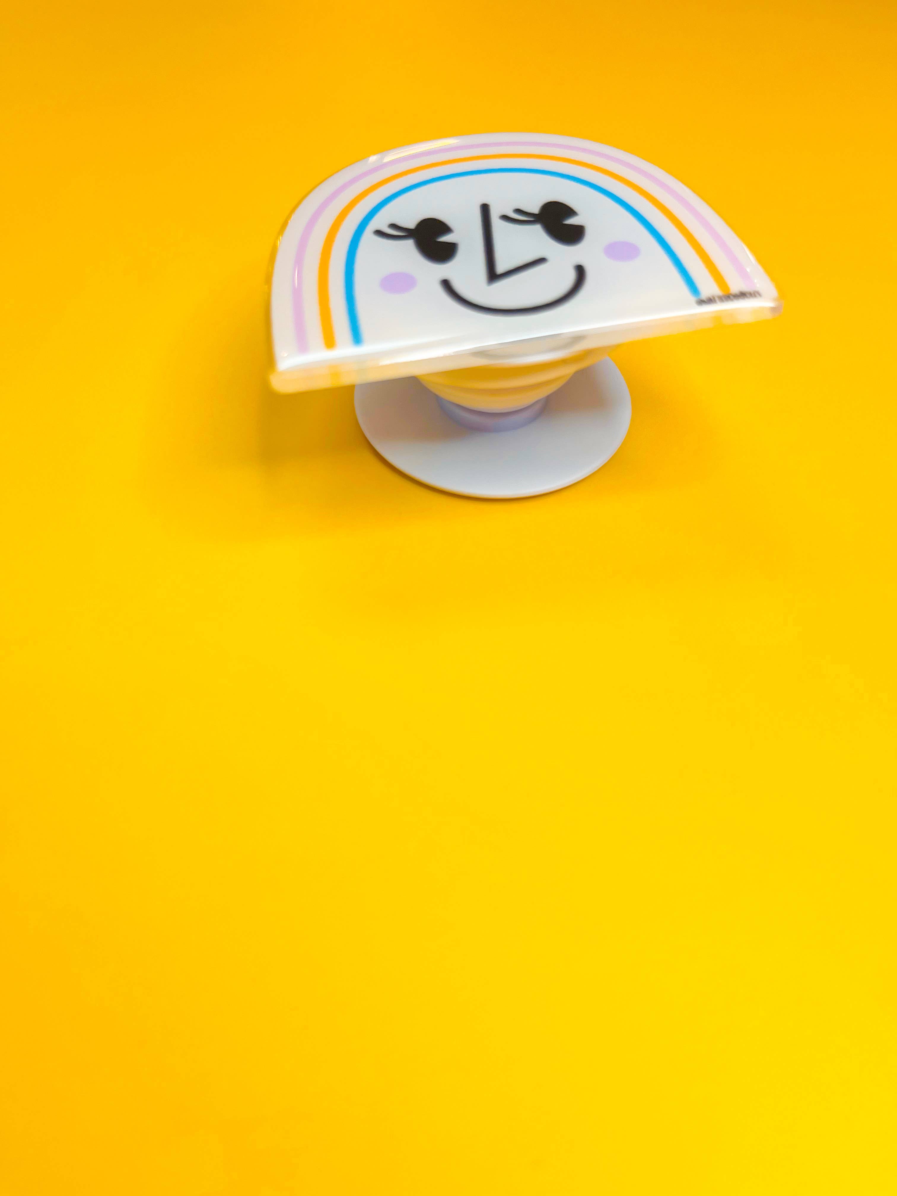 Meet Smiley Skies, the phone grip that’s all about spreading joy and color wherever you go! This adorable accessory features a cheerful smiling face set against a vibrant rainbow backdrop, bringing happy vibes every time you pick up your phone. Equipped with durable 3M adhesive, Smiley Skies provides a secure grip for easy texting, selfies, and scrolling. It also works as a convenient stand for hands-free viewing. Whether you're chasing rainbows or brightening up your day, Smiley Skies adds a playful pop of positivity to your device!