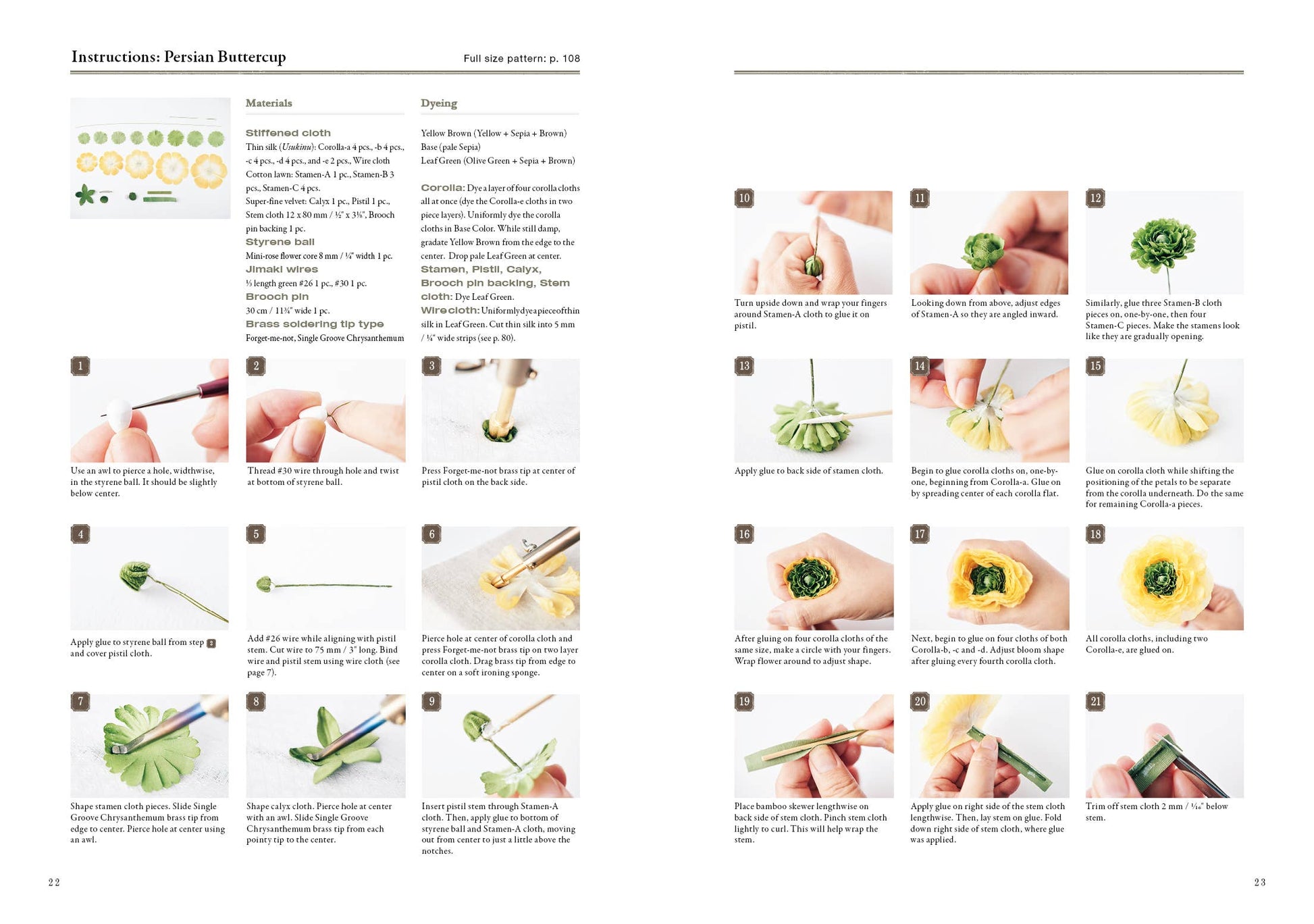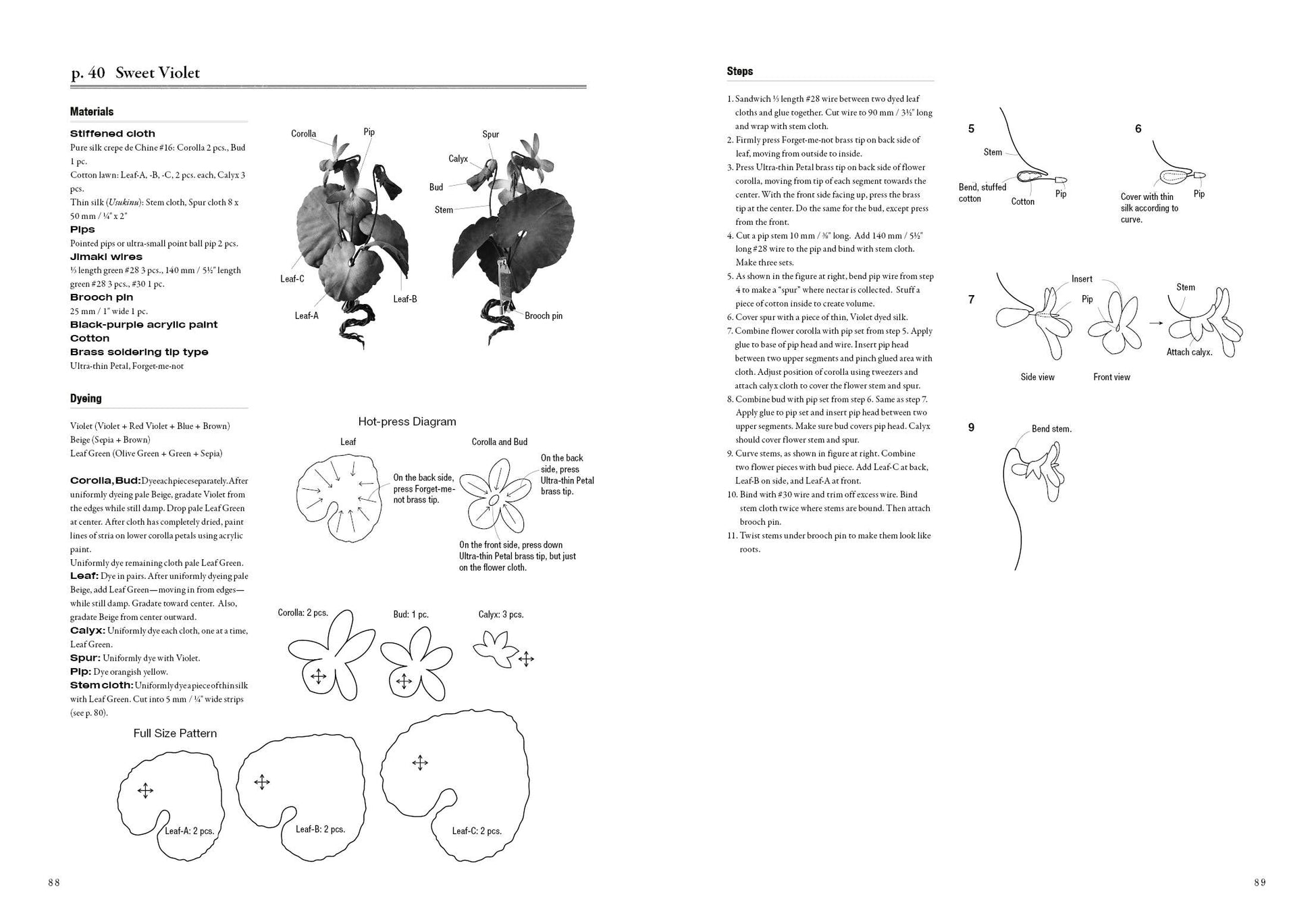 Full-size templates for each project. How to dye your own fabrics to replicate each flower's unique colors.