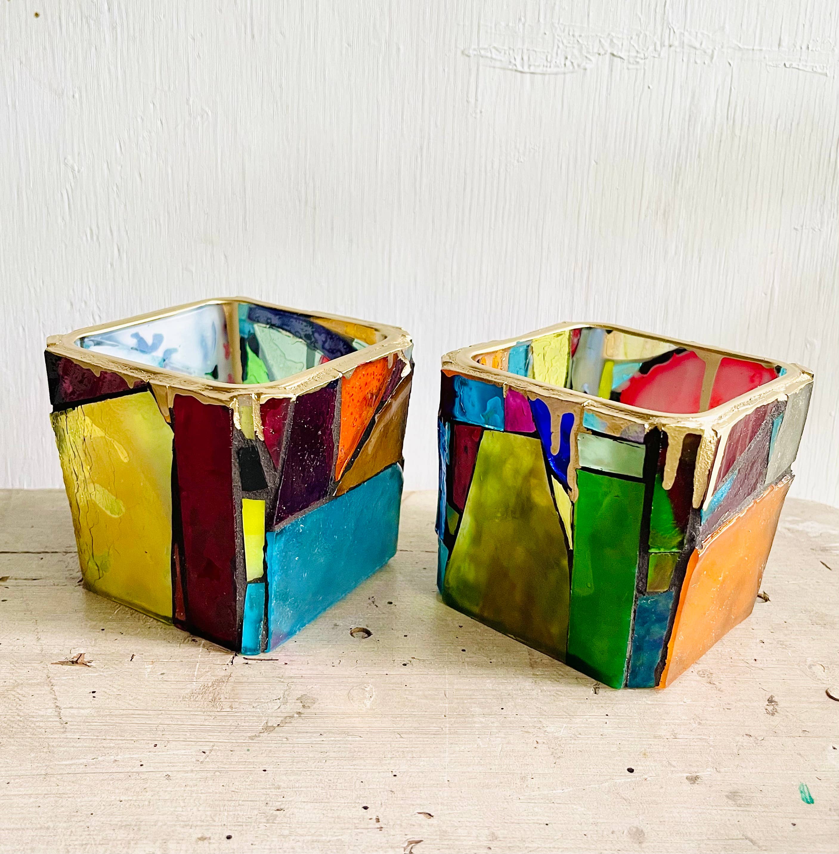 Each votive is one-of-a-kind. Each will be similar to the sample picture with slight handmade variation.